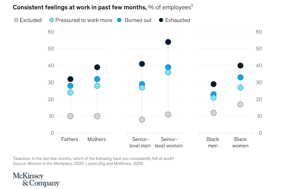 Report from McKinsey & Company showing the impact the pandemic has had on how employees feel at work.